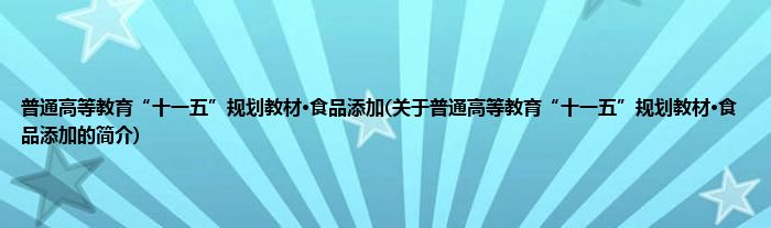 本文关于普通高等教育“十一五”规划教材·食品添加的简介就讲解完毕,希望对大家有所帮助。