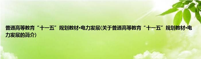 本文关于普通高等教育“十一五”规划教材·电力发展的简介就讲解完毕,希望对大家有所帮助。