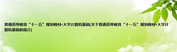 1、 《普通高等教育“十一五”规划教材·大学计算机基础》是2009年7月中国水利水电出版社出版的图书。