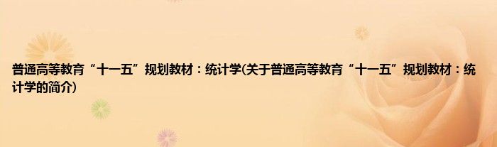 本文关于普通高等教育“十一五”规划教材:统计学的简介就讲解完毕,希望对大家有所帮助。