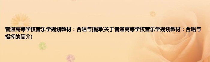 本文关于普通高等学校音乐学规划教材:合唱与指挥的简介就讲解完毕,希望对大家有所帮助。