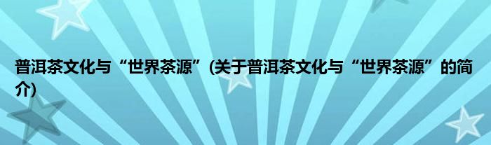 本文关于普洱茶文化与“世界茶源”的简介就讲解完毕,希望对大家有所帮助。