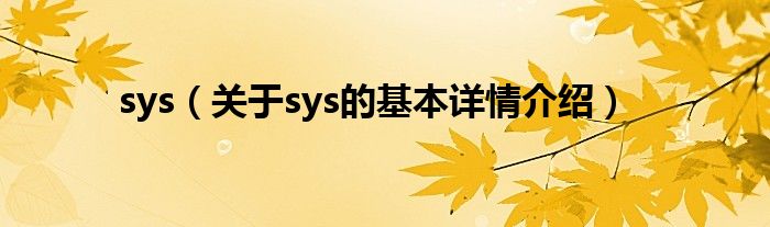 本文关于sys的基本详情介绍就讲解完毕,希望对大家有所帮助。