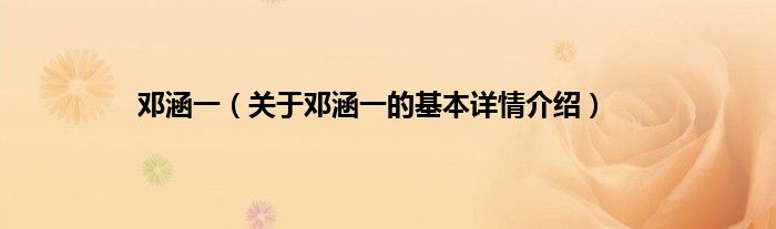 邓涵一(关于邓涵一的基本详情介绍)