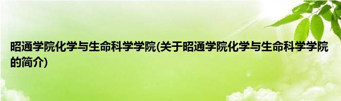 昭通学院化学与生命科学学院(关于昭通学院化学与生命科学学院的简介)