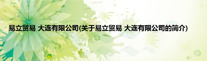 本文关于易立贸易 大连有限公司的简介就讲解完毕,希望对大家有所帮助。