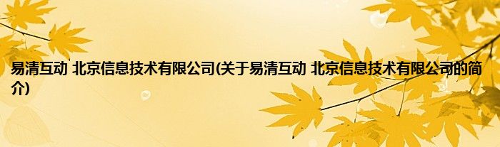 本文关于易清互动 北京信息技术有限公司的简介就讲解完毕,希望对大家有所帮助。