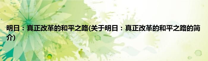 明日:真正改革的和平之路(关于明日:真正改革的和平之路的简介)