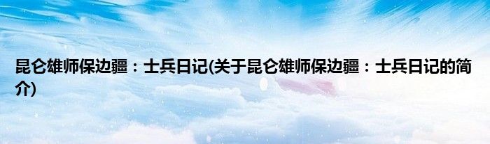 大家好,昆仑雄师保边疆:士兵日记,关于昆仑雄师保边疆:士兵日记的简介很多人还不知道,现在让我们一起来看看吧!