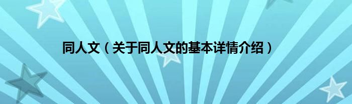 本文关于同人文的基本详情介绍就讲解完毕,希望对大家有所帮助。