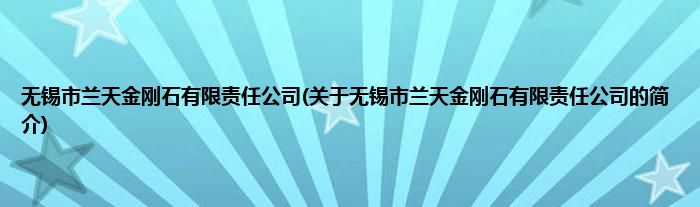 本文关于无锡市兰天金刚石有限责任公司的简介就讲解完毕,希望对大家有所帮助。