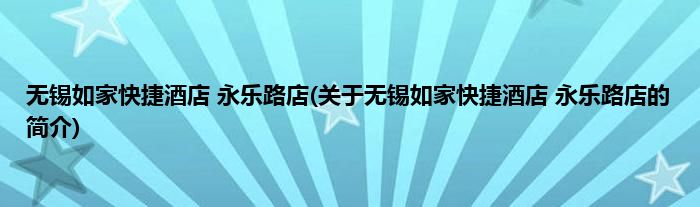 本文关于无锡如家快捷酒店 永乐路店的简介就讲解完毕,希望对大家有所帮助。