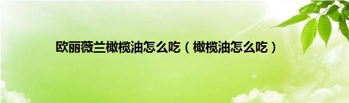 大家好,小科来为大家解答以上问题。欧丽薇兰橄榄油怎么吃,橄榄油怎么吃很多人还不知道,现在让我们一起来看看吧!