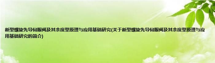 大家好,新型螺旋先导伺服阀及其余度型原理与应用基础研究,关于新型螺旋先导伺服阀及其余度型原理与应用基础研究的简介很多人还不知道,现在让我们一起来看看吧!
