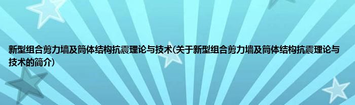 本文关于新型组合剪力墙及筒体结构抗震理论与技术的简介就讲解完毕,希望对大家有所帮助。