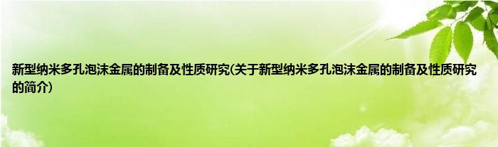 本文关于新型纳米多孔泡沫金属的制备及性质研究的简介就讲解完毕,希望对大家有所帮助。