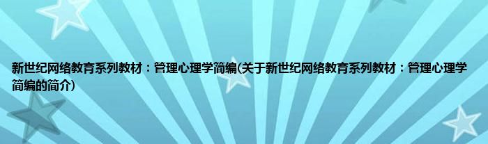 1、 《新世纪网络教育系列教材:管理心理学简编》介绍了管理心理学这门应用性很强的交叉学科的基本概念和理论,并着眼于管理心理学基本原理在企业管理实践中的应用。