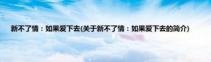 本文关于新不了情:如果爱下去的简介就讲解完毕,希望对大家有所帮助。