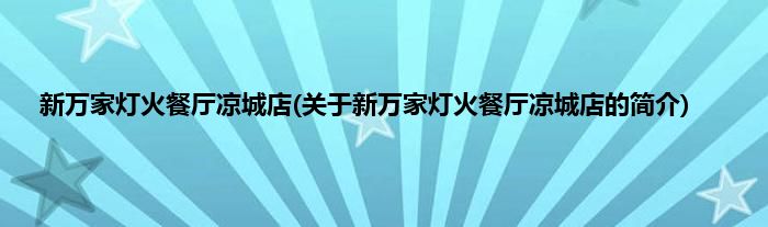 大家好,新万家灯火餐厅凉城店,关于新万家灯火餐厅凉城店的简介很多人还不知道,现在让我们一起来看看吧!