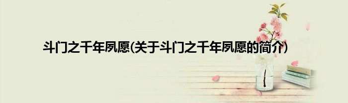 本文关于斗门之千年夙愿的简介就讲解完毕,希望对大家有所帮助。