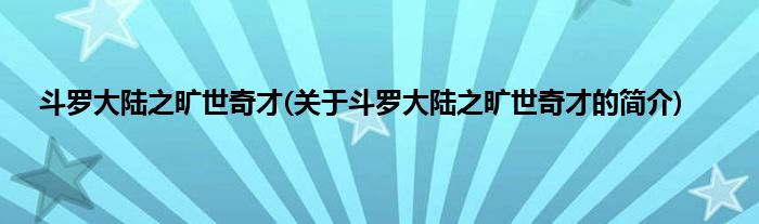 本文关于斗罗大陆之旷世奇才的简介就讲解完毕,希望对大家有所帮助。