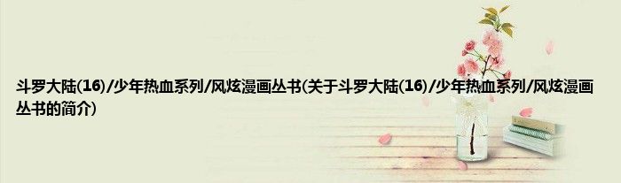 本文关于斗罗大陆(16)/少年热血系列/风炫漫画丛书的简介就讲解完毕,希望对大家有所帮助。