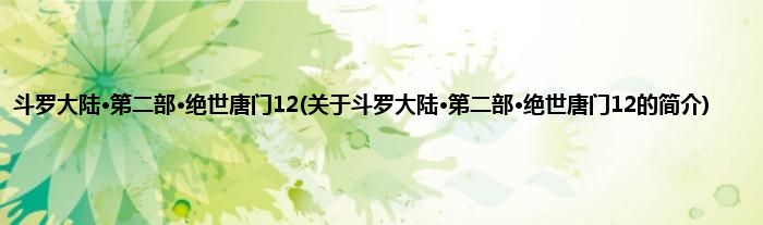 本文关于斗罗大陆·第二部·绝世唐门12的简介就讲解完毕,希望对大家有所帮助。