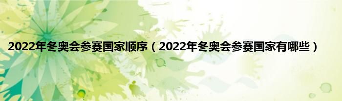 2022年冬奥会参赛国家顺序(2022年冬奥会参赛国家有哪些)