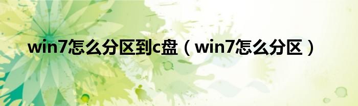 win7怎么分区到c盘(win7怎么分区)