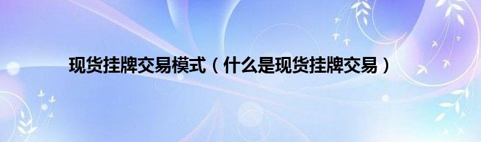 大家好,小常来为大家解答以上问题。现货挂牌交易模式,什么是现货挂牌交易很多人还不知道,现在让我们一起来看看吧!