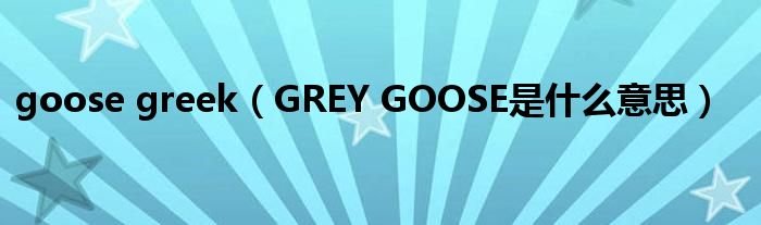 大家好,小常来为大家解答以上问题。goose greek,GREY GOOSE是什么意思很多人还不知道,现在让我们一起来看看吧!