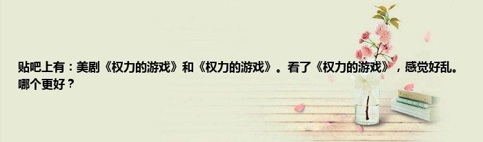 大家好,小常来为大家解答以上问题。贴吧上有:美剧《权力的游戏》和《权力的游戏》。看了《权力的游戏》,感觉好乱。哪个更好?很多人还不知道,现在让我们一起来看看吧!