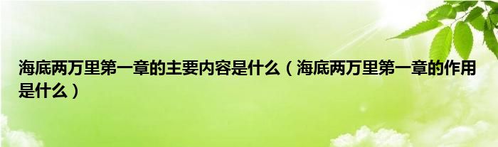 大家好,小常来为大家解答以上问题。海底两万里第一章的主要内容是什么,海底两万里第一章的作用是什么很多人还不知道,现在让我们一起来看看吧!