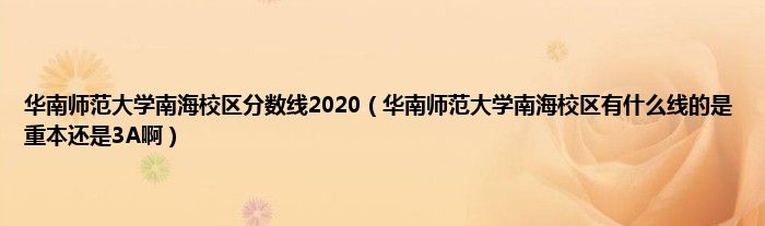 大家好,小常来为大家解答以上问题。华南师范大学南海校区分数线2020,华南师范大学南海校区有什么线的是重本还是3A啊很多人还不知道,现在让我们一起来看看吧!