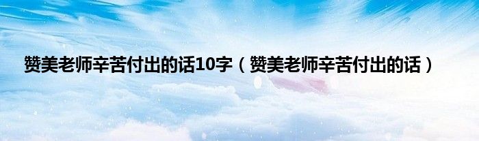 大家好,小常来为大家解答以上问题。赞美老师辛苦付出的话10字,赞美老师辛苦付出的话很多人还不知道,现在让我们一起来看看吧!