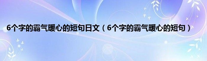 大家好,小常来为大家解答以上问题。6个字的霸气暖心的短句日文,6个字的霸气暖心的短句很多人还不知道,现在让我们一起来看看吧!