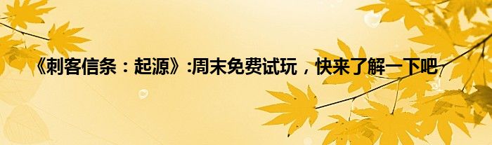 小编今天给各位玩家朋友们带来的是《刺客信条:起源》:周末免费试玩,快来了解一下吧,有记得的玩家朋友吗?不记得也没有关系,小编已经帮助大家把《刺客信条:起源》:周末免费试玩,快来了解一下吧找了出来,你只需要动动你的小手就可以轻松知道啦,快来瞧一瞧吧。