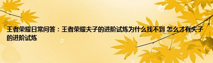 以上就是王者荣耀日常问答:王者荣耀夫子的进阶试炼为什么找不到,怎么才有夫子的进阶试炼的推荐,相信通过王者荣耀日常问答:王者荣耀夫子的进阶试炼为什么找不到,怎么才有夫子的进阶试炼这篇文章能帮到你,也欢迎对游戏很感兴趣小伙伴们一起来探讨。