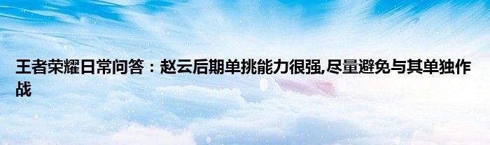 以上就是王者荣耀日常问答:赵云后期单挑能力很强,尽量避免与其单独作战的推荐,相信通过王者荣耀日常问答:赵云后期单挑能力很强,尽量避免与其单独作战这篇文章能帮到你,也欢迎对游戏很感兴趣小伙伴们一起来探讨。