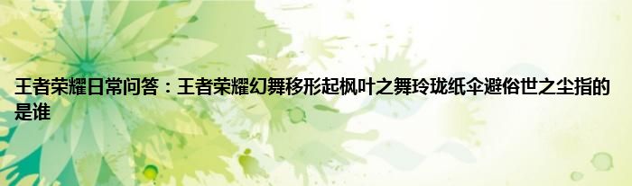今天来聊聊关于王者荣耀日常问答:王者荣耀幻舞移形起枫叶之舞玲珑纸伞避俗世之尘指的是谁的文章,游戏是很多人的选择,但是游戏玩多了也会身心疲惫,现在就为大家来简单介绍下王者荣耀日常问答:王者荣耀幻舞移形起枫叶之舞玲珑纸伞避俗世之尘指的是谁,希望对各位小伙伴们有所帮助。