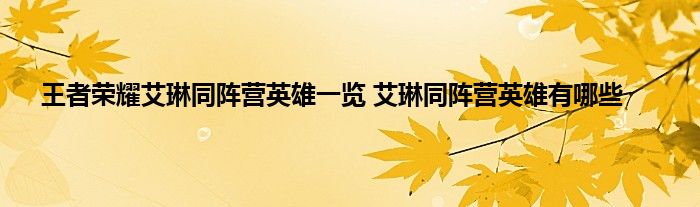 王者荣耀艾琳同阵营的英雄汇总