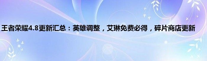 感谢你在百忙之中抽出时间阅读王者荣耀4.8更新汇总:英雄调整,艾琳免费必得,碎片商店更新这篇文章。你觉得今天王者荣耀4.8更新汇总:英雄调整,艾琳免费必得,碎片商店更新话题怎么样?关于王者荣耀4.8更新汇总:英雄调整,艾琳免费必得,碎片商店更新这篇文章的任何评论都可以告诉我。你的每一个建议都是对小编辑的肯定和鼓舞。小编明天会继续给你带来更多的好内容。我希翼你不要错过。感谢支持哟!