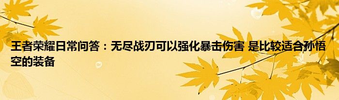 今天来聊聊关于王者荣耀日常问答:无尽战刃可以强化暴击伤害,是比较适合孙悟空的装备的文章,游戏是很多人的选择,但是游戏玩多了也会身心疲惫,现在就为大家来简单介绍下王者荣耀日常问答:无尽战刃可以强化暴击伤害,是比较适合孙悟空的装备,希望对各位小伙伴们有所帮助。