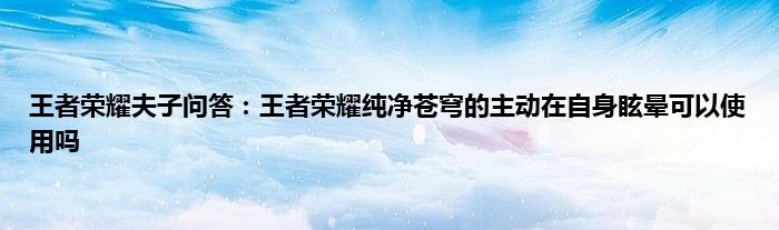 今天来聊聊关于王者荣耀夫子问答:王者荣耀纯净苍穹的主动在自身眩晕可以使用吗的文章,游戏是很多人的选择,但是游戏玩多了也会身心疲惫,现在就为大家来简单介绍下王者荣耀夫子问答:王者荣耀纯净苍穹的主动在自身眩晕可以使用吗,希望对各位小伙伴们有所帮助。
