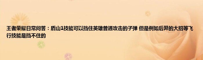 问题:盾山1技能可以挡住英雄普通攻击的子弹,但是例如后羿的大招等飞行技能是挡不住的?