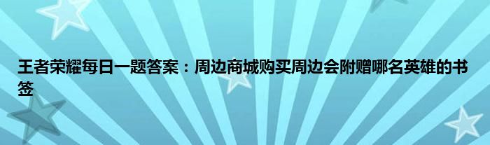 以上就是王者荣耀每日一题答案:周边商城购买周边会附赠哪名英雄的书签的推荐,相信通过王者荣耀每日一题答案:周边商城购买周边会附赠哪名英雄的书签这篇文章能帮到你,也欢迎对游戏很感兴趣小伙伴们一起来探讨。