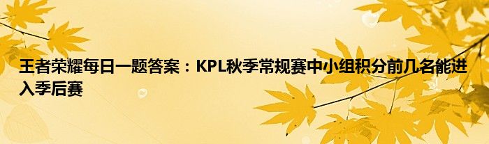 以上就是王者荣耀每日一题答案:KPL秋季常规赛中小组积分前几名能进入季后赛的推荐,相信通过王者荣耀每日一题答案:KPL秋季常规赛中小组积分前几名能进入季后赛这篇文章能帮到你,也欢迎对游戏很感兴趣小伙伴们一起来探讨。