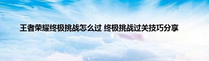 感谢你在百忙之中抽出时间阅读王者荣耀终极挑战怎么过 终极挑战过关技巧分享这篇文章。你觉得今天王者荣耀终极挑战怎么过 终极挑战过关技巧分享话题怎么样?关于王者荣耀终极挑战怎么过 终极挑战过关技巧分享这篇文章的任何评论都可以告诉我。你的每一个建议都是对小编辑的肯定和鼓舞。小编明天会继续给你带来更多的好内容。我希翼你不要错过。感谢支持哟!
