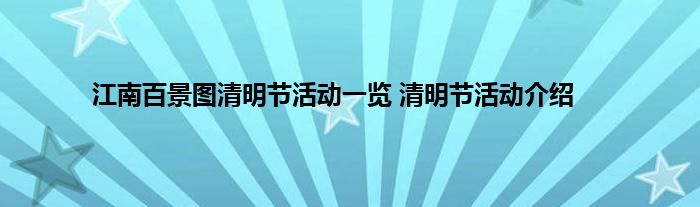 江南百景图清明节有哪些活动