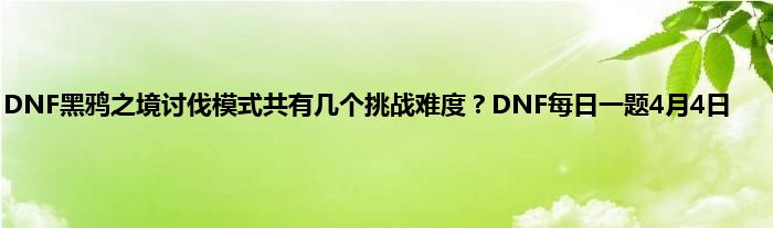 DNF黑鸦之境讨伐模式共有几个挑战难度?DNF公众号每天都会有题目,玩家答对可赢取黑钻、抗疲劳药等奖励,今天的问题是黑鸦之境讨伐模式共有几个挑战难度,很多玩家不知道答案,下面就来跟着小编一起来看看吧。